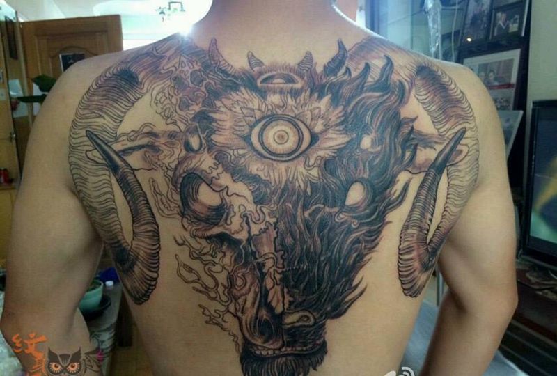 当前位置: 首页 >山东省青岛市纹身店-青岛地狱男爵刺青纹身图案>男士后背三面神兽纹身图片
