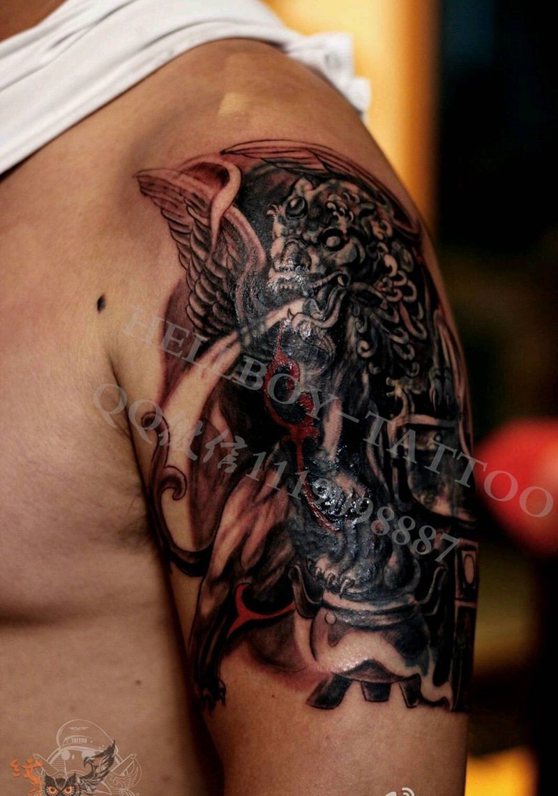 当前位置: 首页 >山东省青岛市纹身店-青岛地狱男爵刺青纹身图案>大臂遮盖貔貅纹身图片