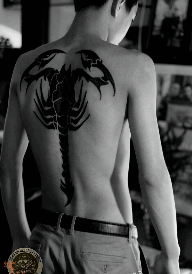 当前位置: 首页 >山东省青岛市纹身店-青岛地狱男爵刺青纹身图案>男士背部蝎子纹身图片