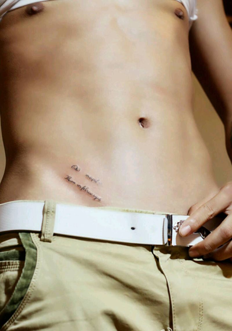 • T关于私处得爱!纹身图片_成品腹部清新字符图腾纹身图案