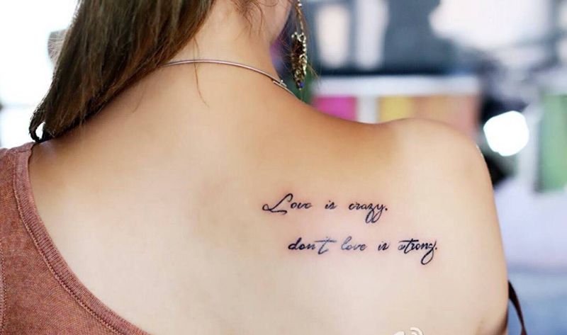 小字母纹身图片_成品背部清新字符纹身图案