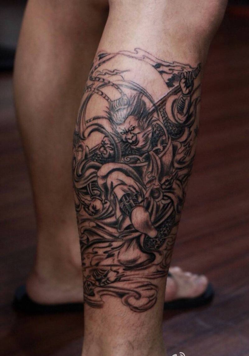 大圣纹身图片_成品腿部传统人物鬼神青岛黄岛齐天大圣斗战胜佛纹身图案