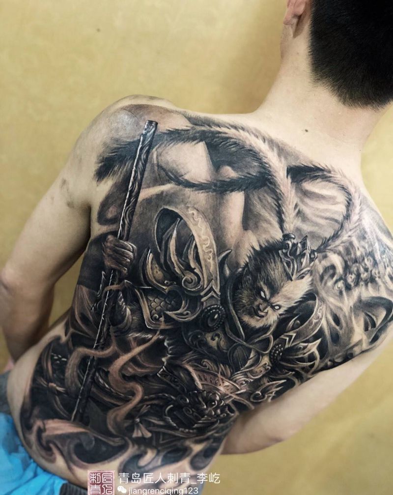 齐天大圣 孙悟空 猴子纹身图片_成品背部传统写实人物鬼神原创纹身图案