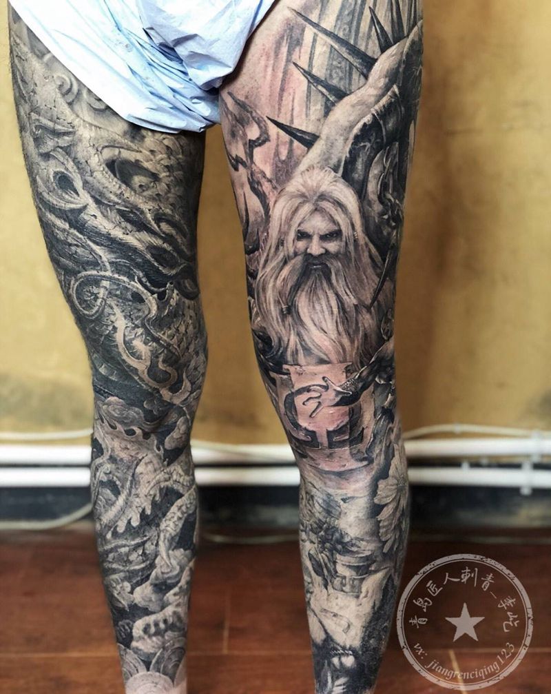 • T网红王老大花腿龙纹身图片_腿部新传统纹身图案