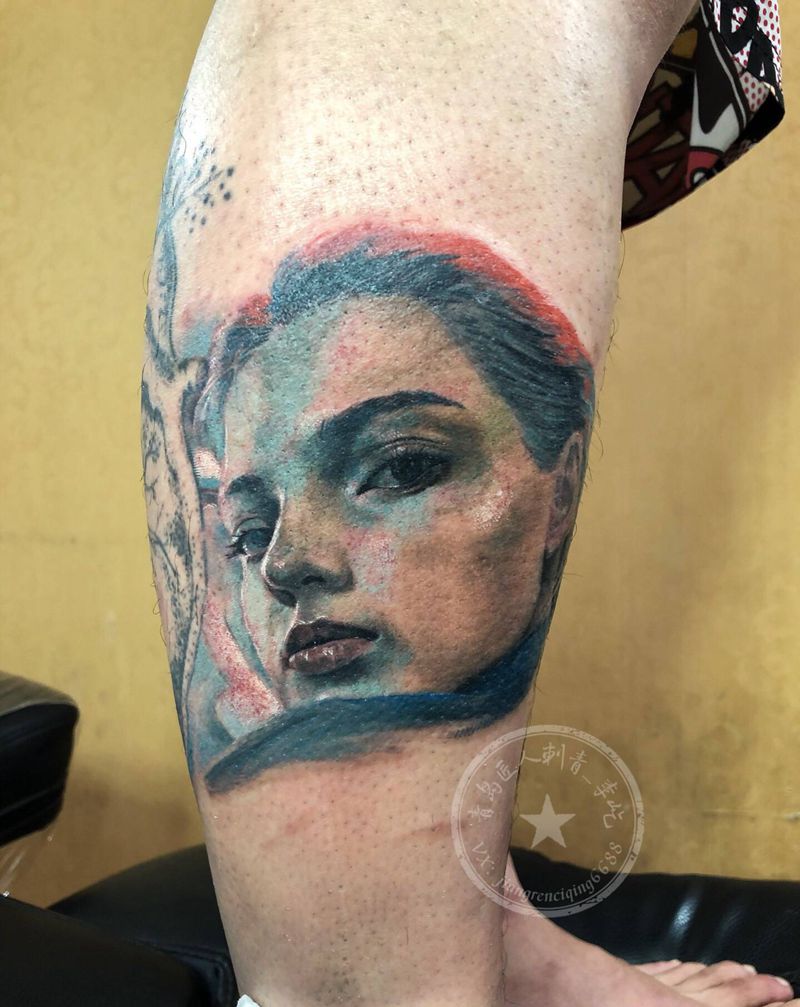 当前位置: 首页 >山东省青岛市纹身店-匠人刺青纹身图案>欧美肖像未完成纹身图片_腿部欧美写实彩色肖像纹身图案