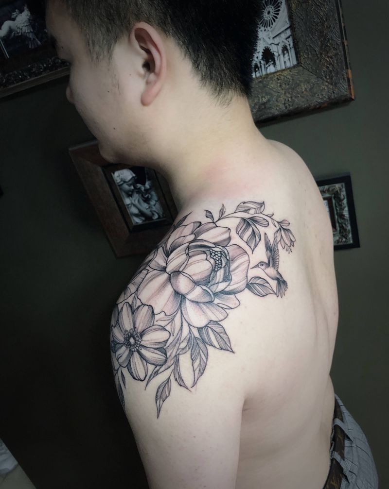 素花纹身图片_肩部纹身图案