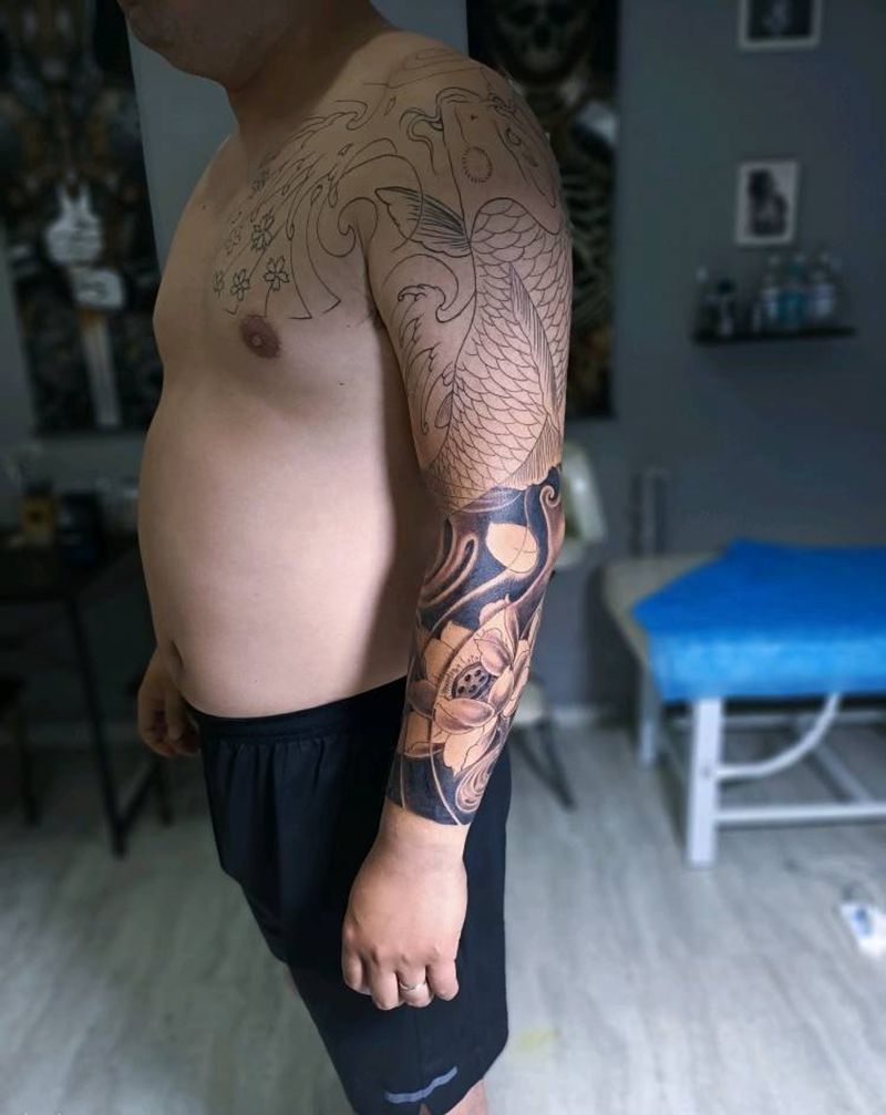 花臂鲤鱼未完成纹身图片_手臂纹身图案