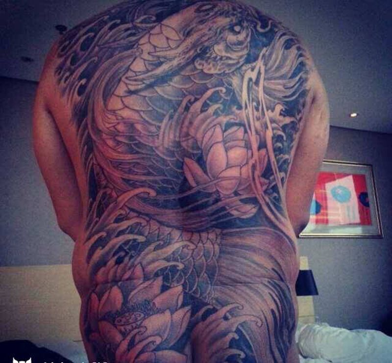 锦鲤纹身图片_背部传统动物原创纹身图案