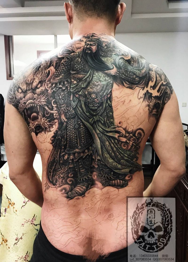 未完成 龙威关公纹身图片_遮盖作品传统背部原创纹身图案