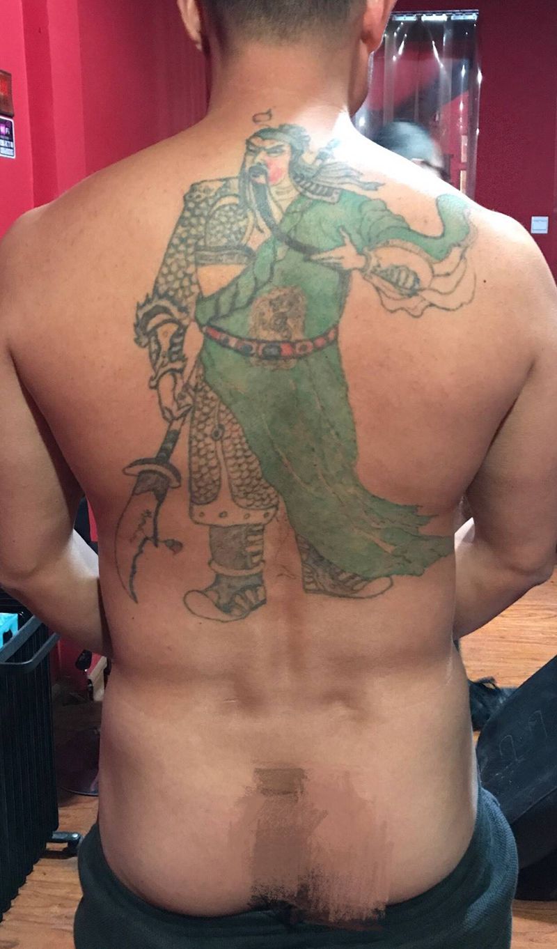 未完成 龙威关公纹身图片_遮盖作品传统背部原创纹身图案