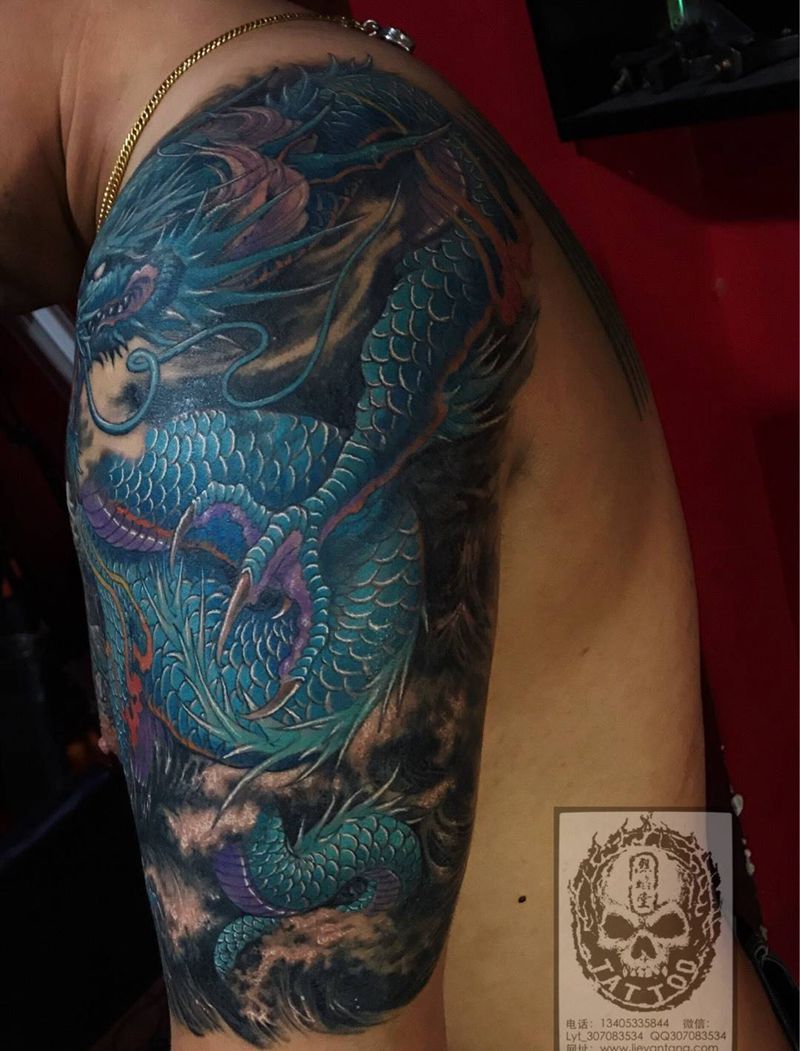 • T网红王老大花腿龙纹身图片_腿部新传统纹身图案