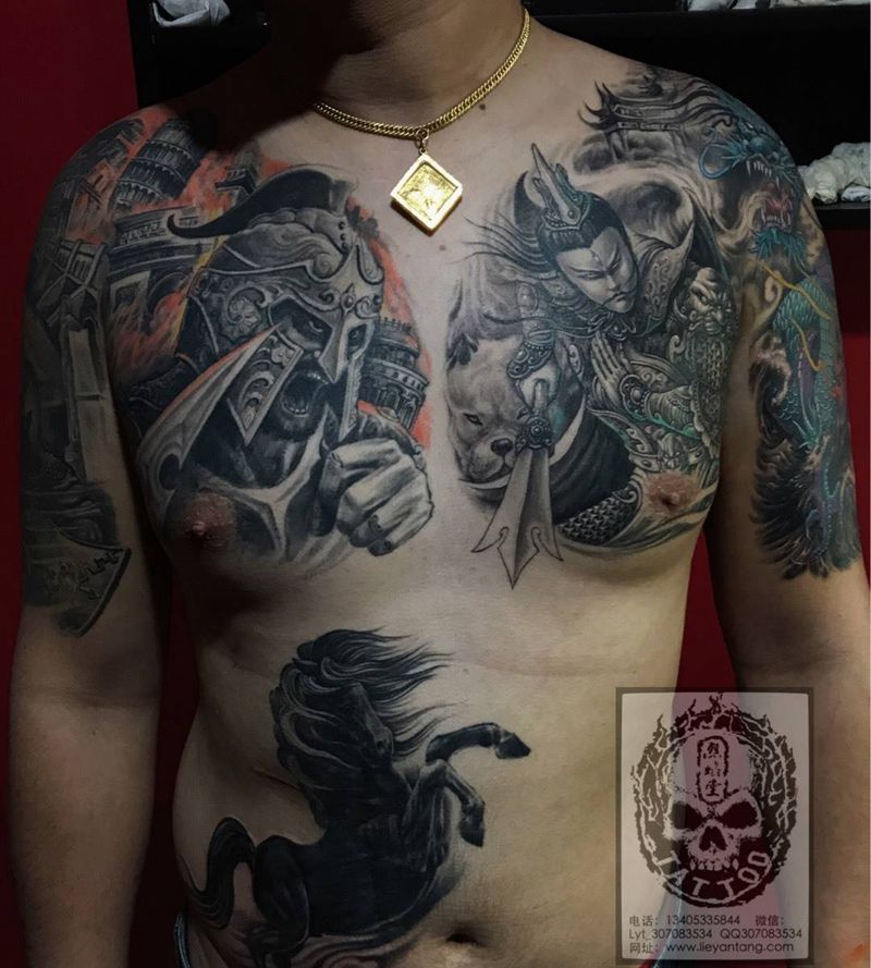 当前位置: 首页 >山东省淄博市纹身店-烈焰堂纹身纹身图案>双甲纹身图片_成品神兽鬼神原创人物宗教传统胸部肩部手臂纹身图案