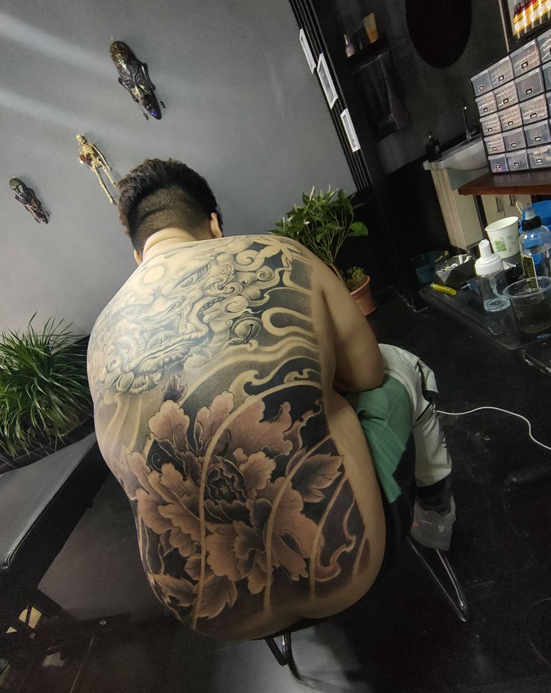 当前位置: 首页 >山东省淄博市纹身店-匠魂刺青纹身图案>唐狮牡丹拼接满背纹身图片_背部新传统纹身图案