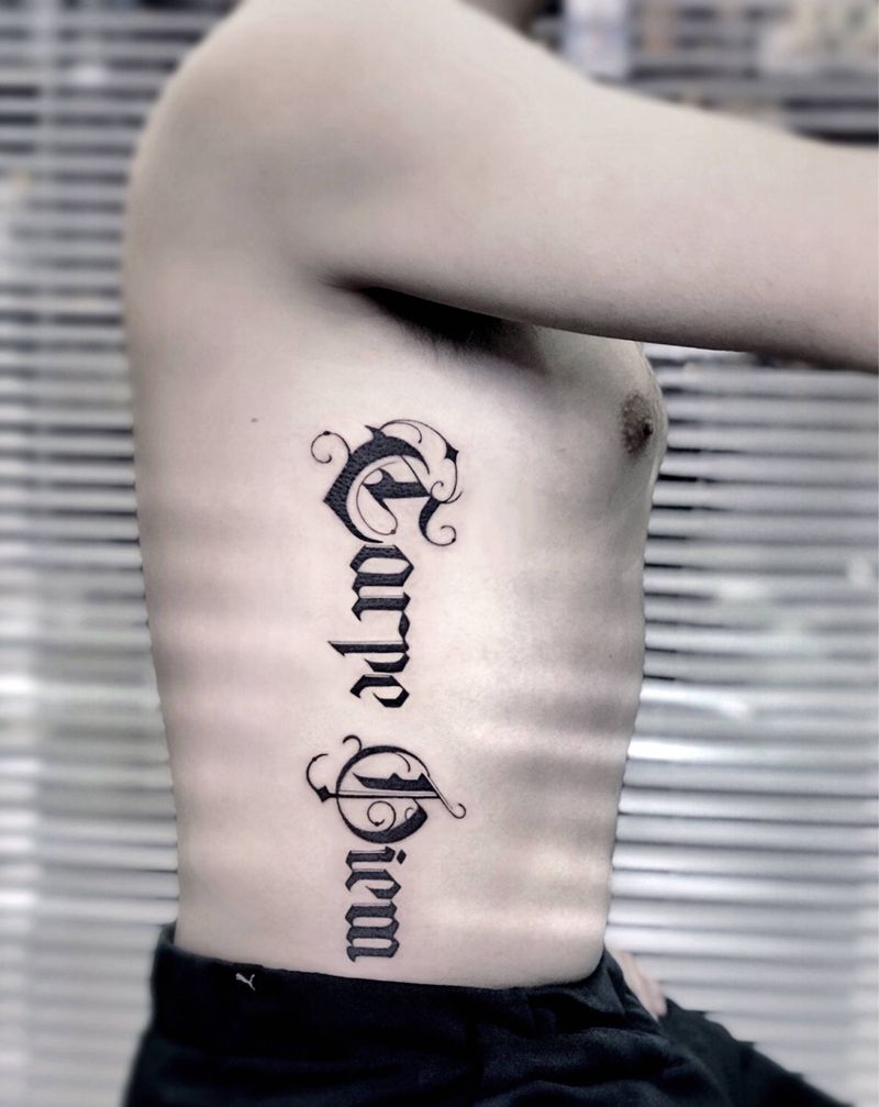 哥特花体字纹身图片_腹部腰部图腾花体字哥特字母纹身图案