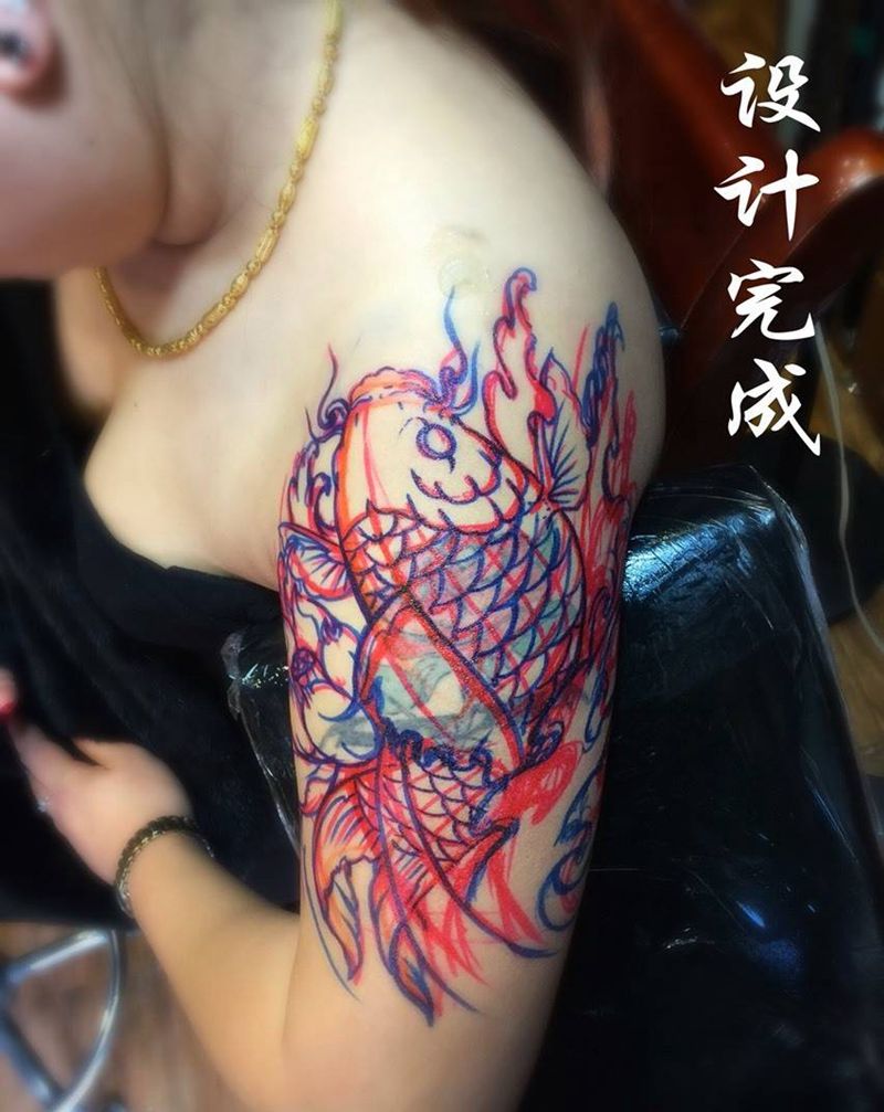鲤鱼遮盖失败纹身纹身图片_成品手臂传统原创鲤鱼大臂纹身图案