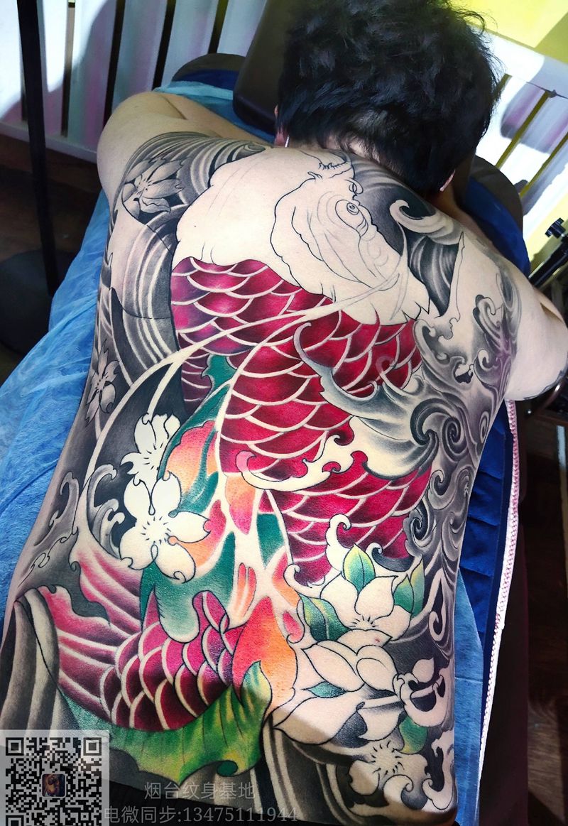 黑灰满背纹身图案