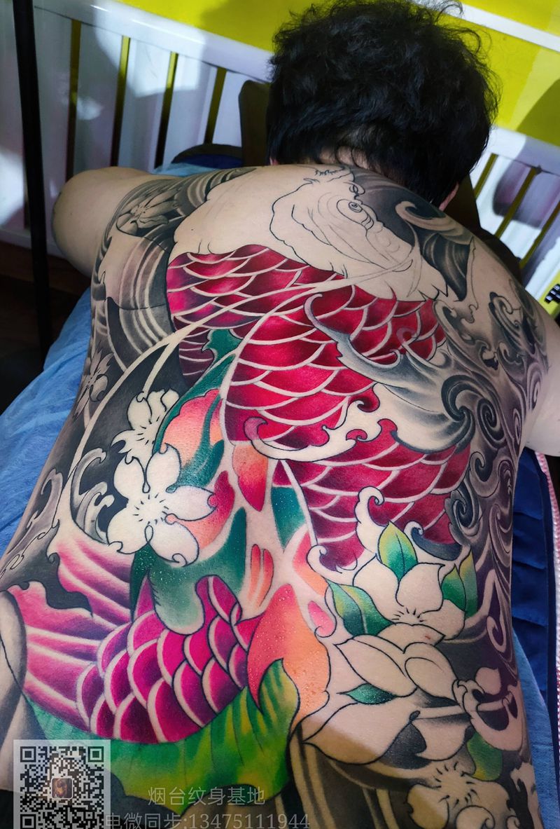 黑灰满背纹身图案