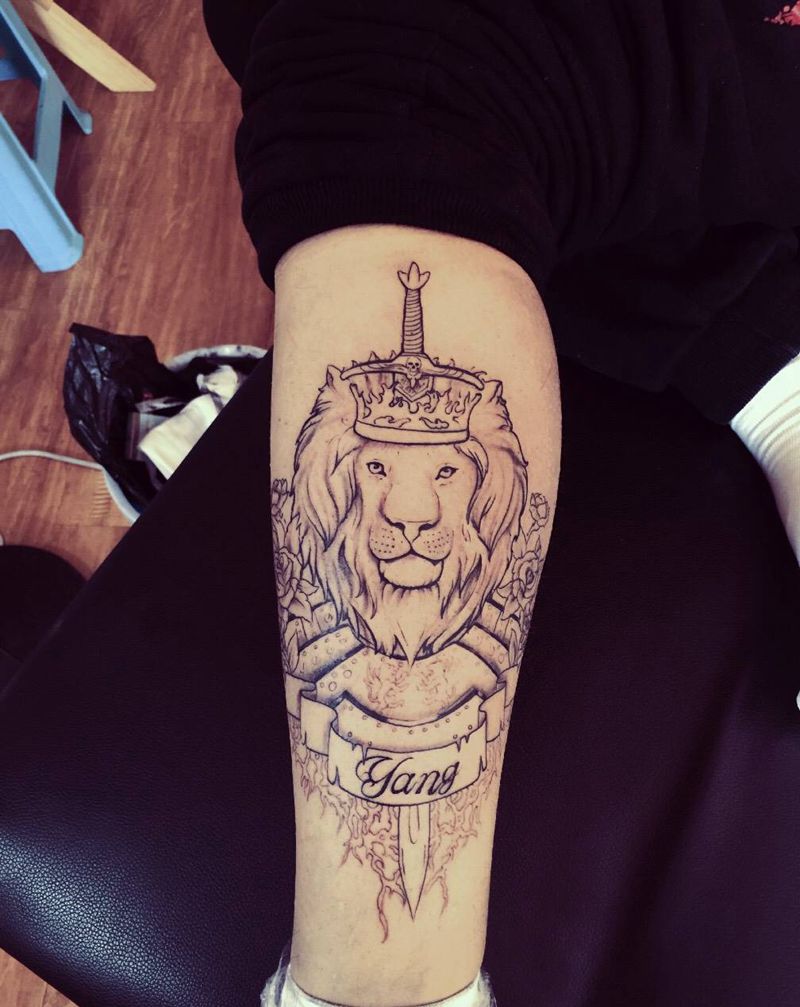 小腿狮子纹身图片_成品腿部欧美动物纹身图案
