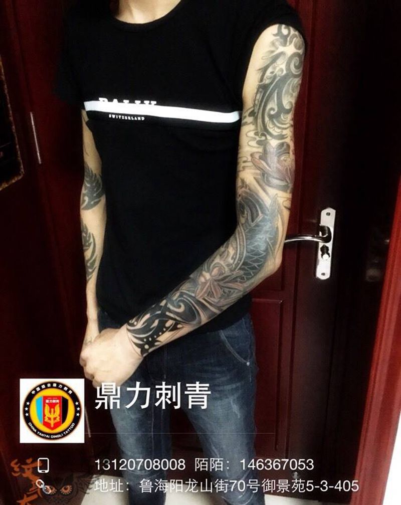当前位置: 首页 >山东省烟台市纹身店-鼎力刺青专业纹身会所纹身图案>花臂填补纹身图片_手臂传统图腾动物纹身图案