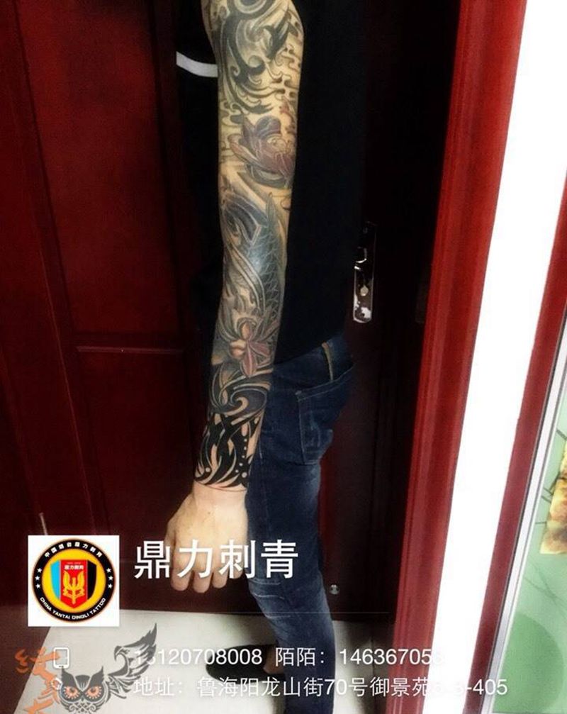 当前位置: 首页 >山东省烟台市纹身店-鼎力刺青专业纹身会所纹身图案>花臂填补纹身图片_手臂传统图腾动物纹身图案