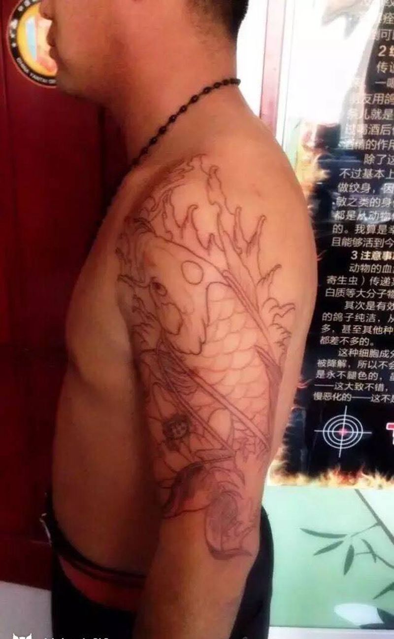 当前位置: 首页 >山东省烟台市纹身店-鼎力刺青专业纹身会所纹身图案>大臂锦鲤纹身图片_手臂传统动物纹身图案