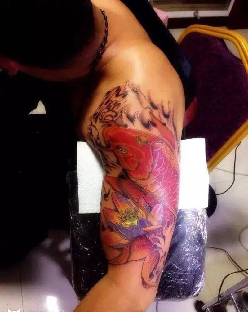 大臂锦鲤纹身图片_手臂传统动物纹身图案