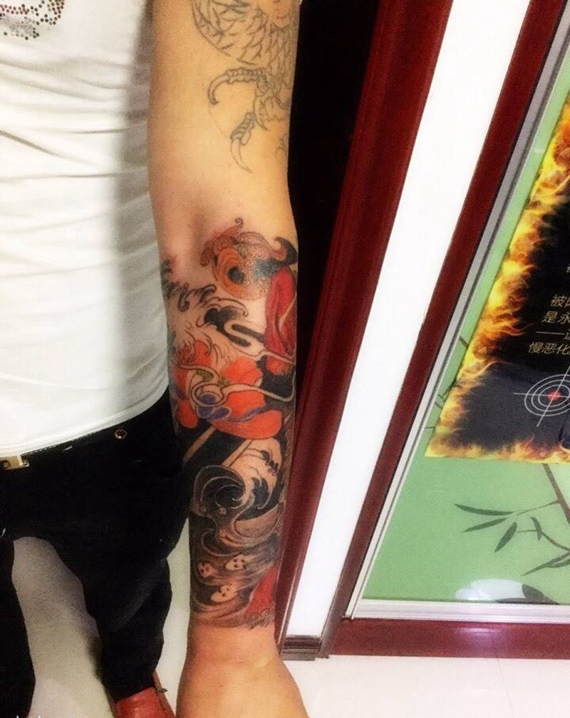 当前位置: 首页 >山东省烟台市纹身店-鼎力刺青专业纹身会所纹身图案>包小臂招财麒麟纹身图片_成品手臂传统动物纹身图案