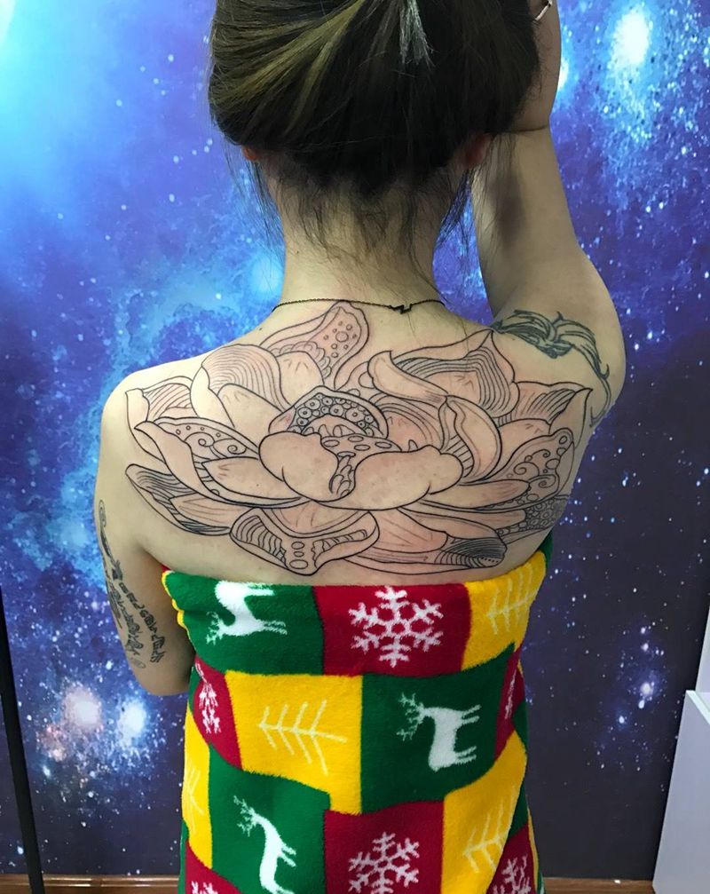 当前位置: 首页 >山东省烟台市纹身店-鼎力刺青专业纹身会所纹身图案>༺后͈̎背͈̎莲͈̎花͈̎线͈̎条͈̎༻纹身图片_背部传统图腾纹身图案