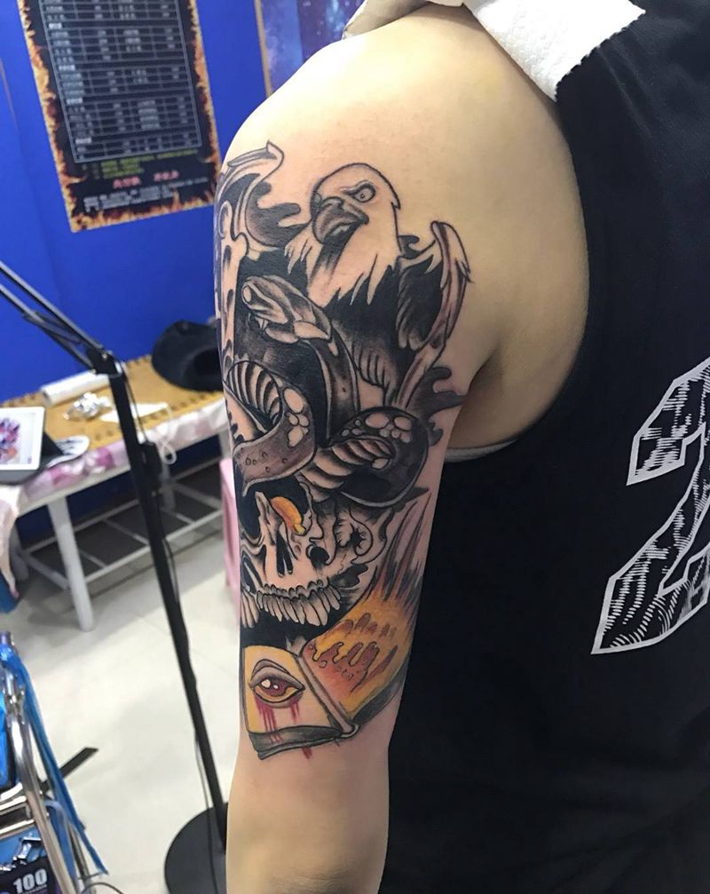 当前位置: 首页 >山东省烟台市纹身店-鼎力刺青专业纹身会所纹身图案>大臂欧美纹身图片