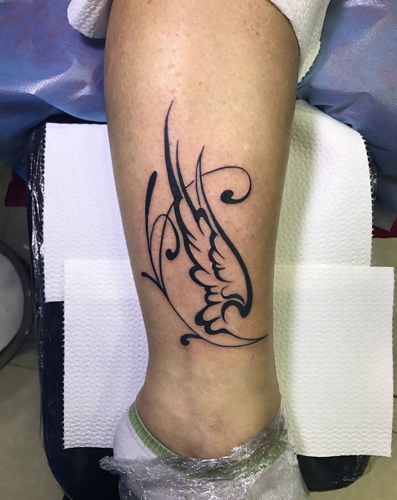 当前位置: 首页 >山东省烟台市纹身店-鼎力刺青专业纹身会所纹身图案>小腿外侧图腾翅膀纹身图片