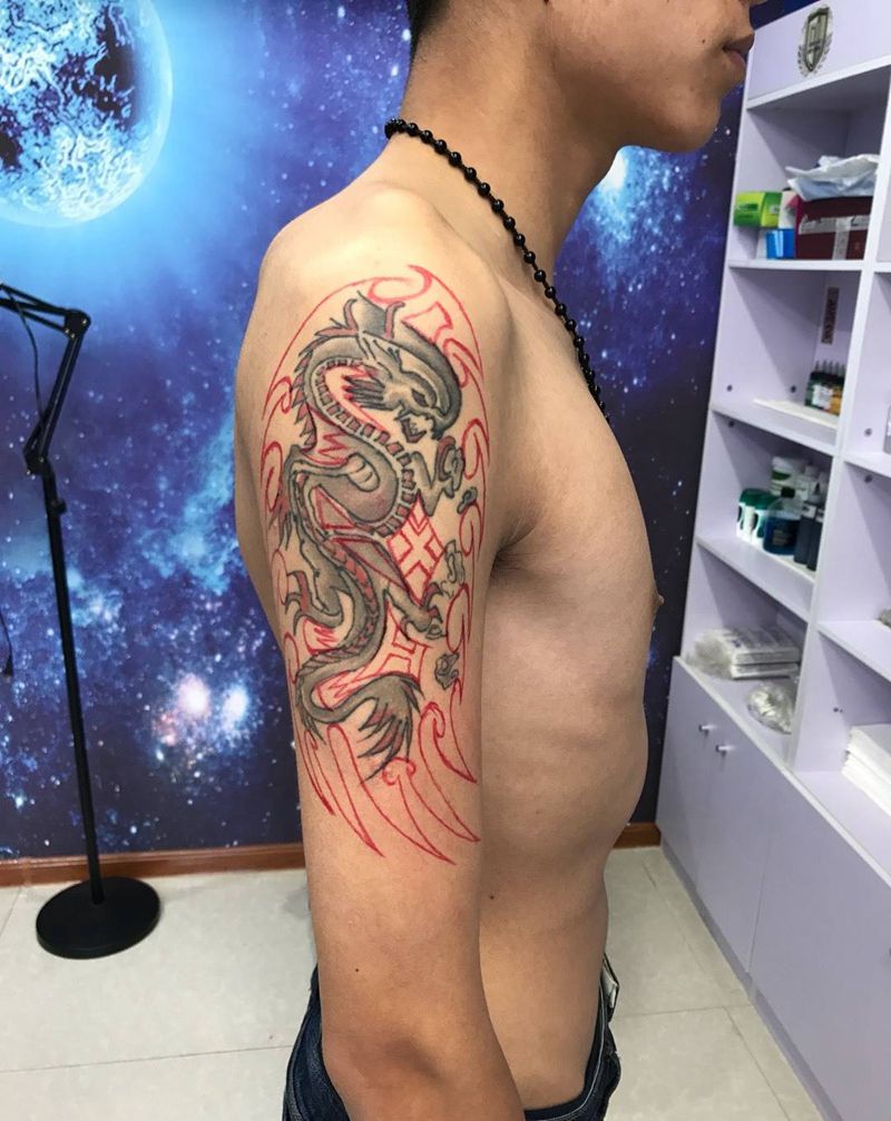 当前位置: 首页 >山东省烟台市纹身店-鼎力刺青专业纹身会所纹身图案>大臂遮盖纹身图片