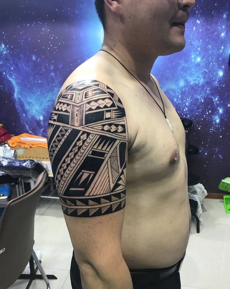 当前位置: 首页 >山东省烟台市纹身店-鼎力刺青专业纹身会所纹身图案>大臂玛雅图腾纹身图片