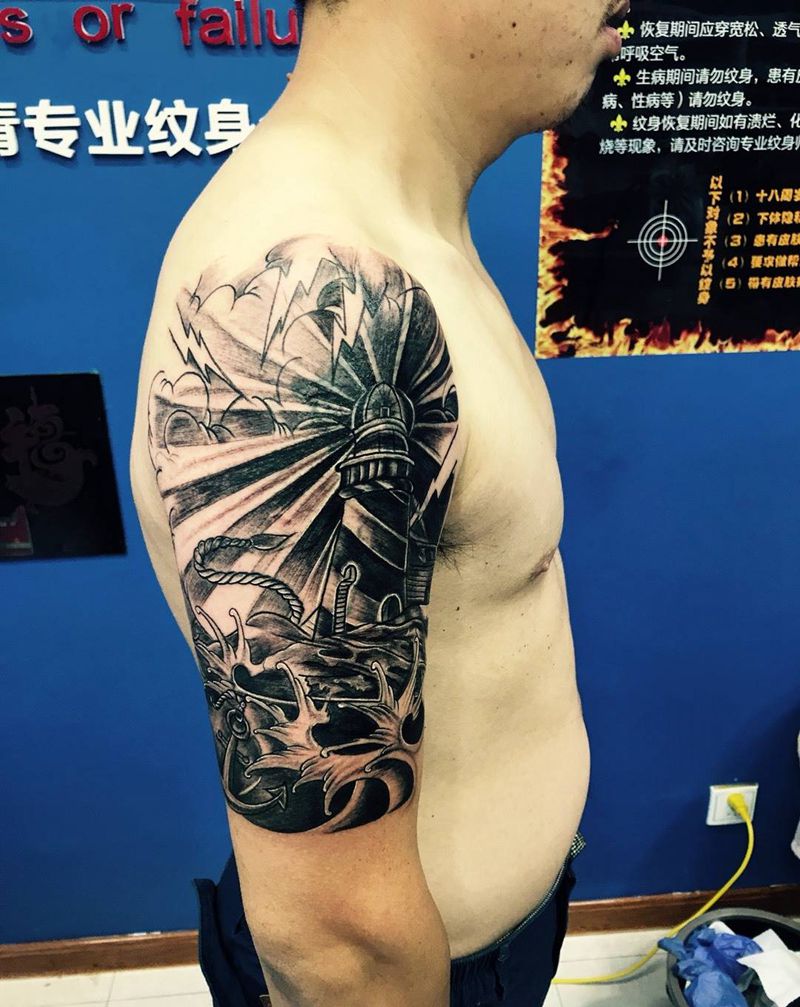 当前位置: 首页 >山东省烟台市纹身店-鼎力刺青专业纹身会所纹身图案>大臂遮盖纹身图片