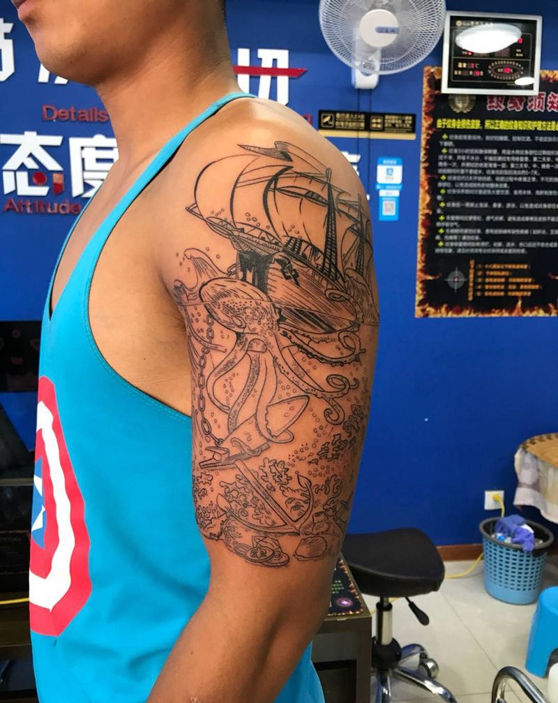 当前位置: 首页 >山东省烟台市纹身店-鼎力刺青专业纹身会所纹身图案>大臂扬帆起航纹身图片