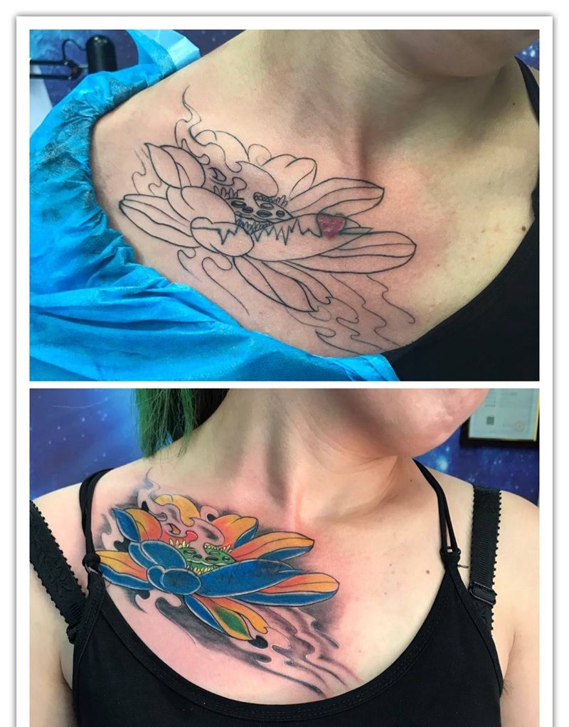 • 女性大花胸纹身_43张霸气漂亮的女性大花胸纹身图案作品