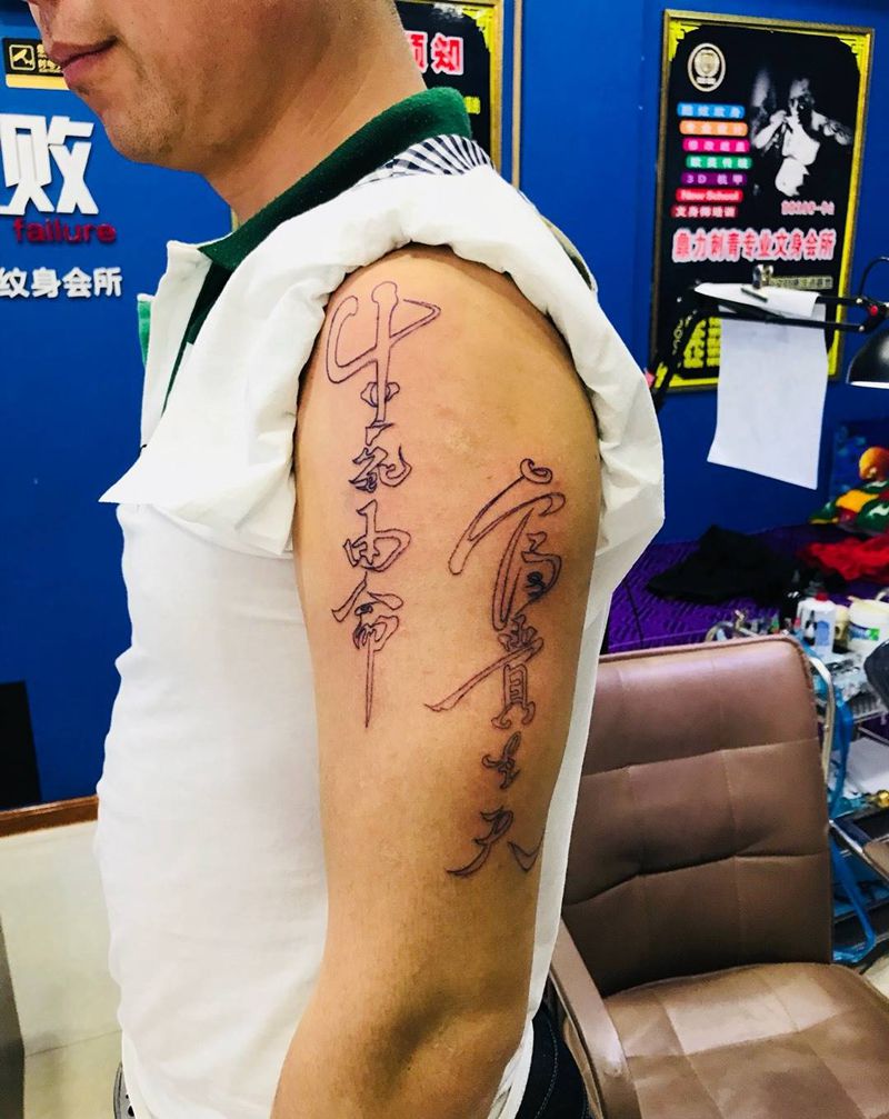当前位置: 首页 >山东省烟台市纹身店-鼎力刺青专业纹身会所纹身图案>大臂中文控纹身图片