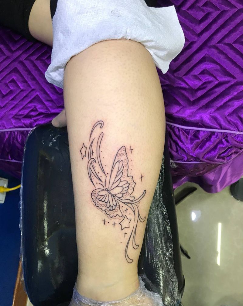 当前位置: 首页 >山东省烟台市纹身店-鼎力刺青专业纹身会所纹身图案>小腿外侧彩蝶纹身图片