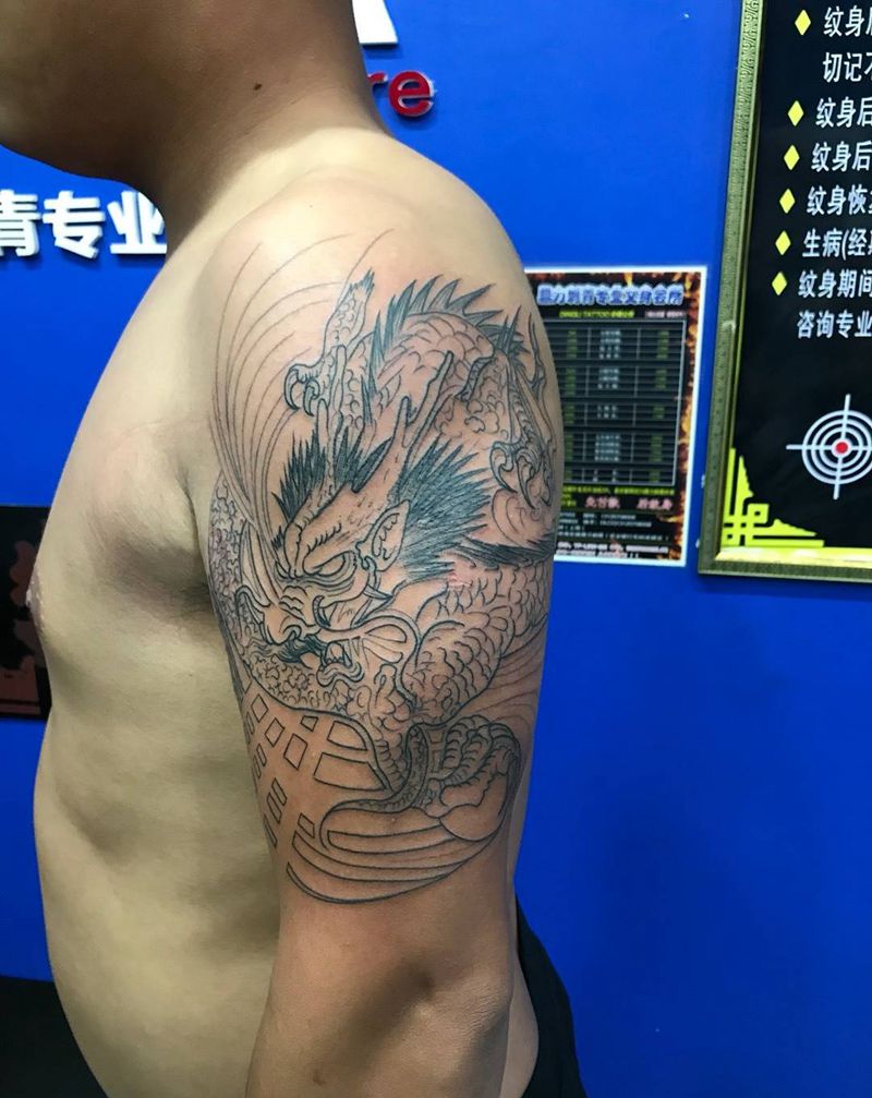 当前位置: 首页 >山东省烟台市纹身店-鼎力刺青专业纹身会所纹身图案>大臂龙头纹身图片