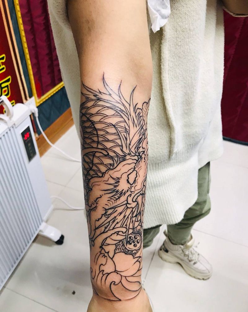 • T网红王老大花腿龙纹身图片_腿部新传统纹身图案