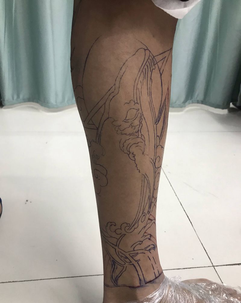 • T网红王老大花腿龙纹身图片_腿部新传统纹身图案