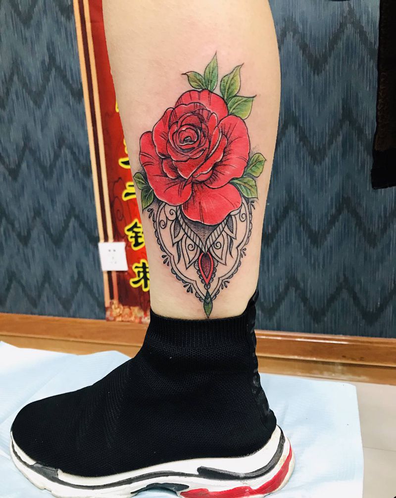 当前位置: 首页 >山东省烟台市纹身店-鼎力刺青专业纹身会所纹身图案>DL 脚踝玫瑰纹身图片_腿部老传统纹身图案