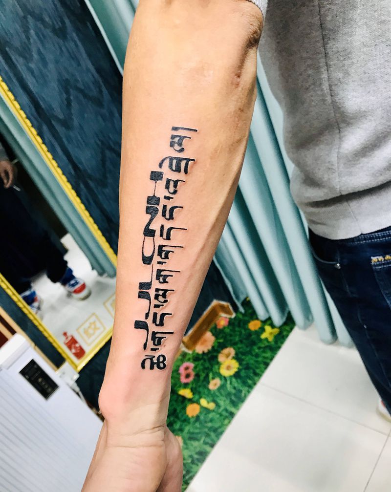当前位置: 首页 >山东省烟台市纹身店-鼎力刺青专业纹身会所纹身图案>DL 小臂梵文纹身图片_手臂图腾纹身图案