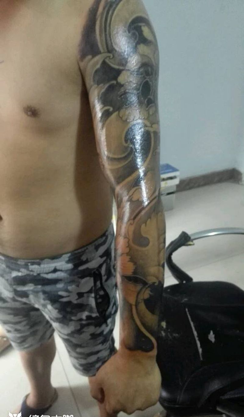 当前位置: 首页 >山东省烟台市纹身店-墨华刺青纹身图案>牡丹浪臂完活纹身图片