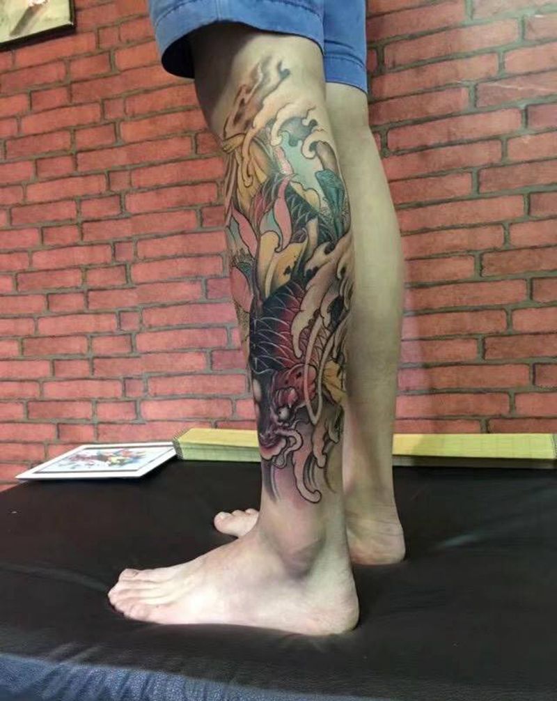 • T网红王老大花腿龙纹身图片_腿部新传统纹身图案
