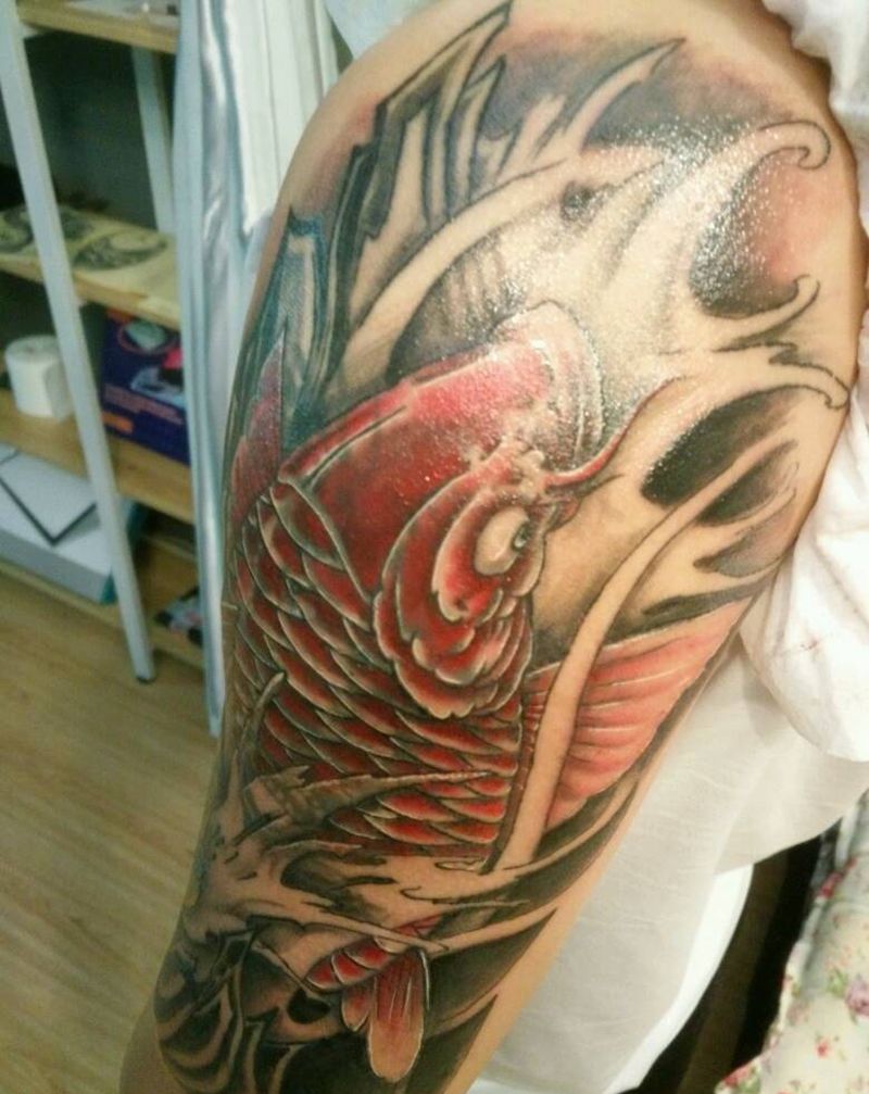 当前位置: 首页 >山东省潍坊市纹身店-澈古刺青纹身图案>鲤鱼遮盖纹身图片