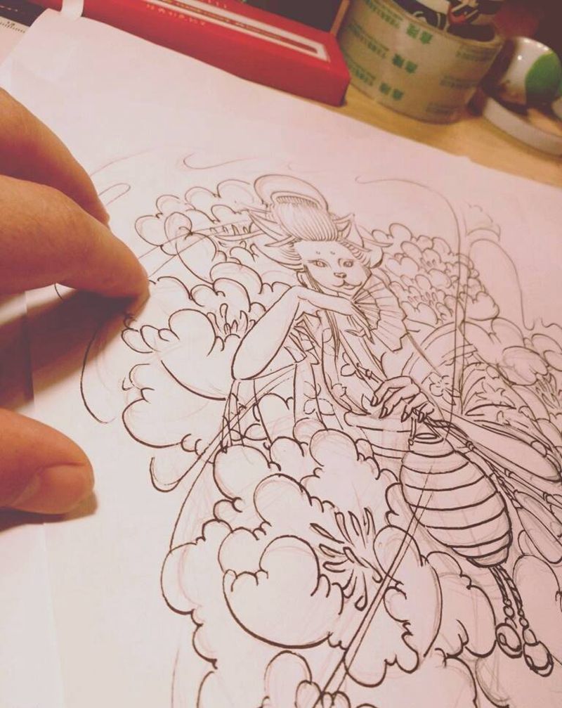 当前位置: 首页 >山东省潍坊市纹身店-澈古刺青纹身图案>猫艺妓(原创手稿)纹身图片