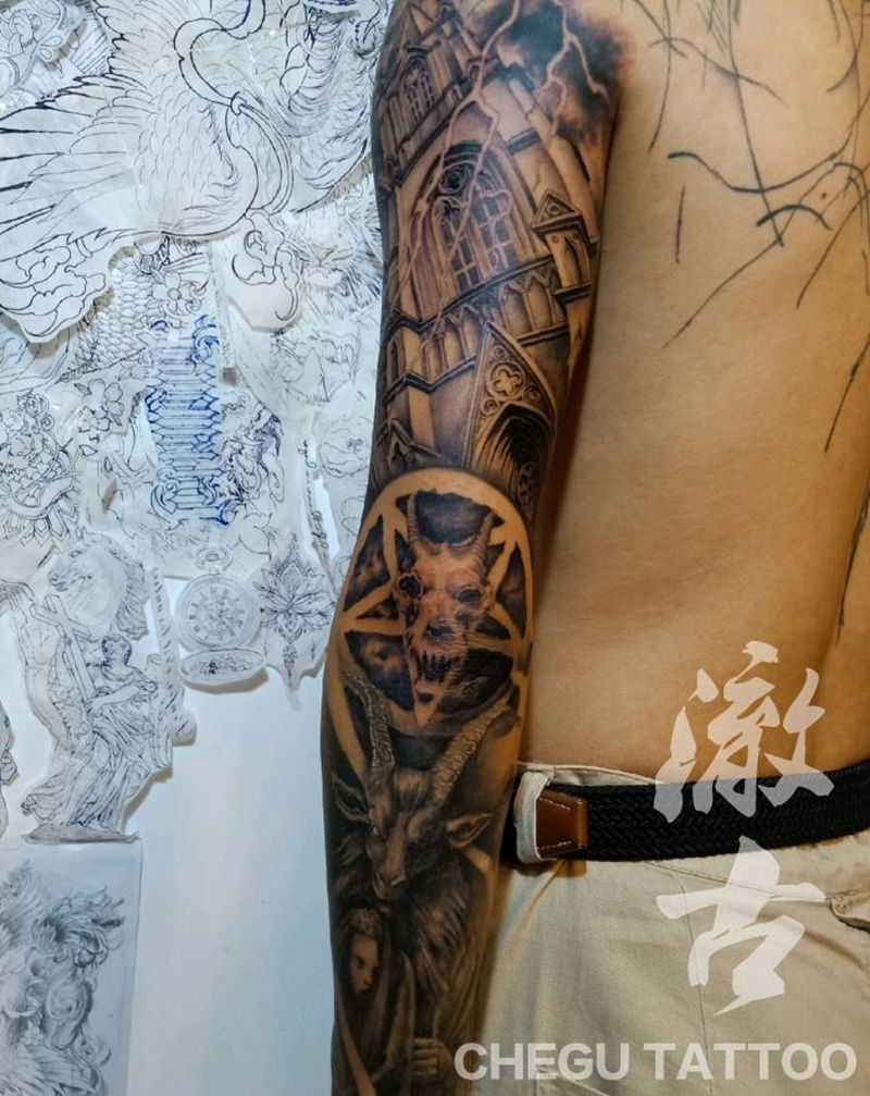 《撒旦》纹身图片_手臂欧美写实花臂纹身图案