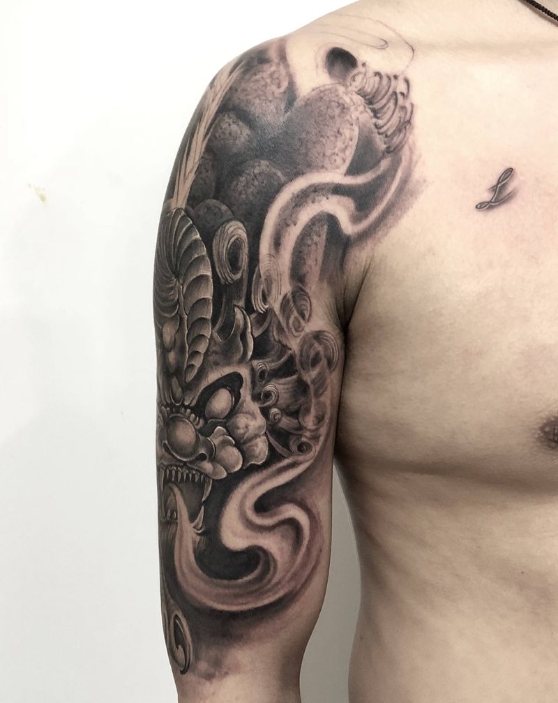 当前位置: 首页 >山东省潍坊市纹身店-山东伟刺青纹身图案>遮盖貔貅纹身图片_手臂新传统纹身图案