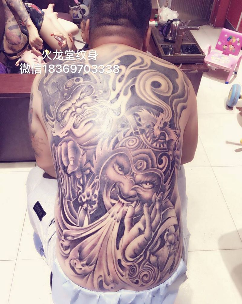 黑灰满背纹身图案