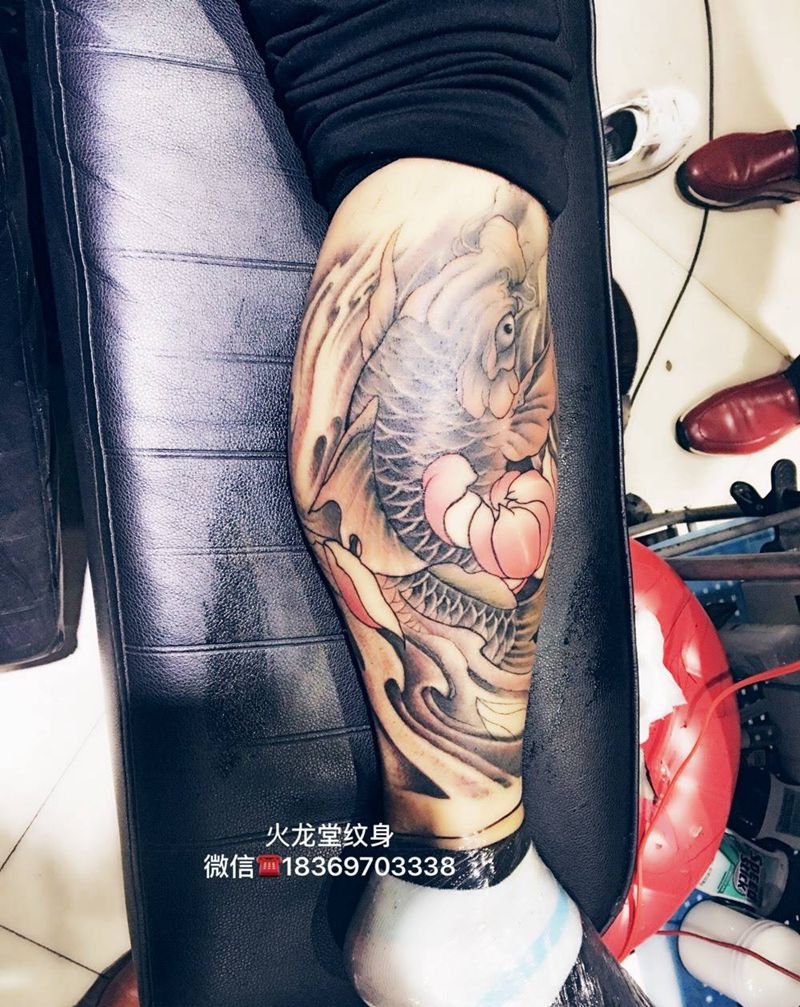 当前位置: 首页 >山东省济宁市纹身店-火龙堂纹身纹身图案>小腿鲤鱼麻药后效果纹身图片